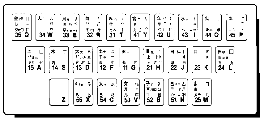 In these input methods, term input and the Association mode are not supported because each code unambiguously defines one Chinese character. If you make a mistake during input, you can correct the data by pressing [Delete] to erase the last keystroke, or [Return] to clear the entire code.