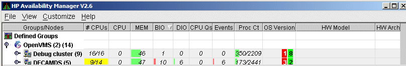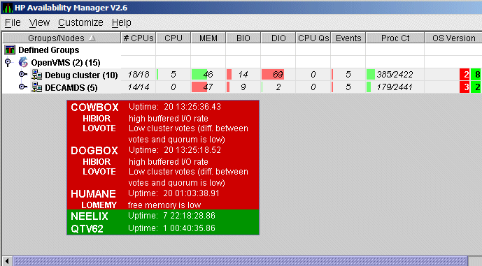 each group, the Availability Manager displays the nodes with which it