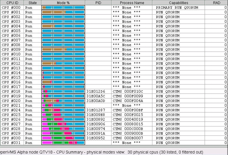 In the OpenVMS CPU Mode Details pane, the following data is displayed: