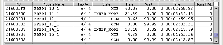 | Rate | Percentage of CPU time used by this process. This is the ratio of CPU time to elapsed time. The CPU rate is also displayed in the bar graph. |