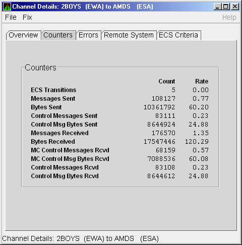 | Messages Sent | Number of packets sent over this channel, including control packets. |
