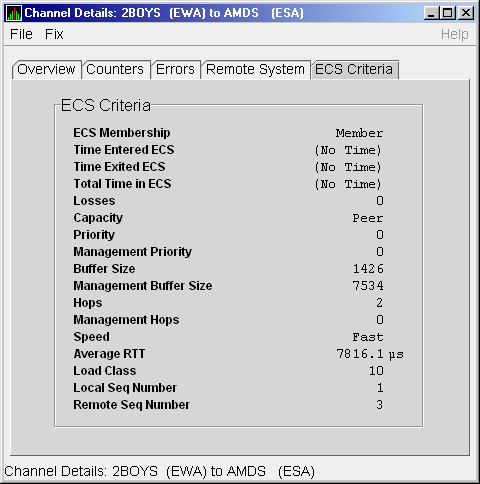 | Capacity | Channel's capacity rating based on evaluating its priority, buffer size, and hops values relative to the current ECS criteria. Values are: Ungraded, Peer, Inferior, Superior. |
