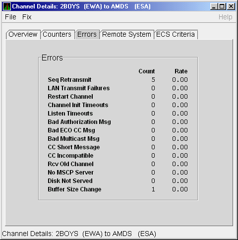 The LAN Channel Counters Data page (Figure 4-15) displays path counters data, including ECS transitions as well as messages and bytes sent.
