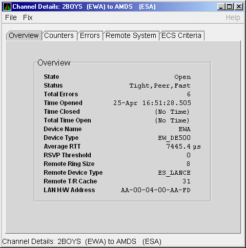 | Time Opened | Last time that this channel had a path to a remote system. |