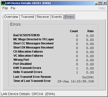 The LAN Device Errors Data page (Figure 4-13) displays LAN device errors data.
