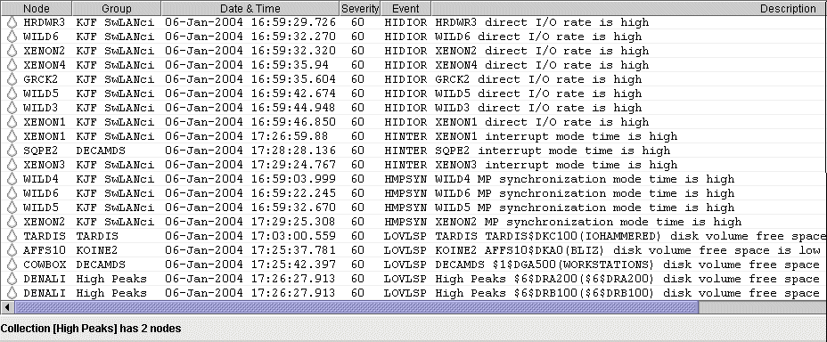 If you collect data on many nodes, running the Availability Manager for a long period of time can result in a large events log. For example, in a run that monitors more than 50 nodes with most of the background data collection enabled, the events log can grow by up to 30 MB per day. At this rate, systems with small disks might fill up the disk on which the events log resides. Closing the Availability Manager application will enable you to access the events log for tasks such as archiving. Starting the Availability Manager starts a new events log. |