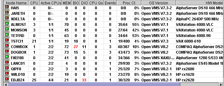 An entry that is dimmed indicates that the current version of OpenVMS does not support that item.