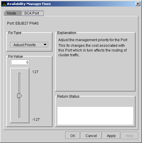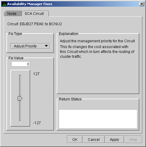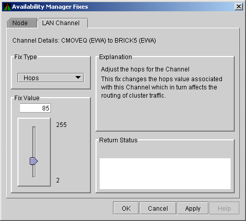 Click Fixes... or use the Fix menu on the Channel Details page. The Availability Manager displays a page with the following Fix Types: