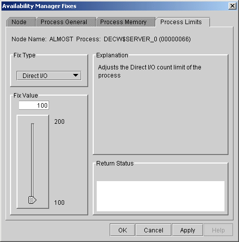 You can use this fix to adjust the direct I/O count limit of a process. When you select the Direct I/O option, the Availability Manager displays the page shown in Figure 6-11.