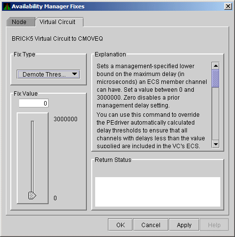On the sample page shown in Figure 6-26, you cannot read the following text (which is displayed when you move the slider down): "The fix operates as follows: Whenever at least none tight peer channel has a delay of less than the management-supplied value, all tight peer channels with delays less than the management-supplied value are automatically included in the ECS. When all tight peer channels have delays equal to or greater than the management setting, the ECS membership delay thresholds are automatically calculated and used.