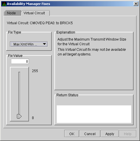 When you select VC LAN Fix..., the Availability Manager displays the first of several fix pages. Use the Fix Type box to select one of the following LAN VC fixes:
