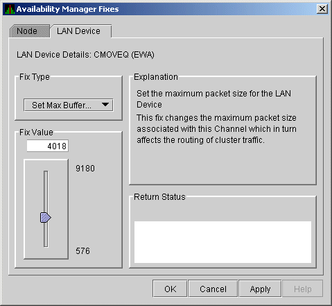 The LAN Device Set Maximum Buffer fix (Figure 6-30) allows you to set