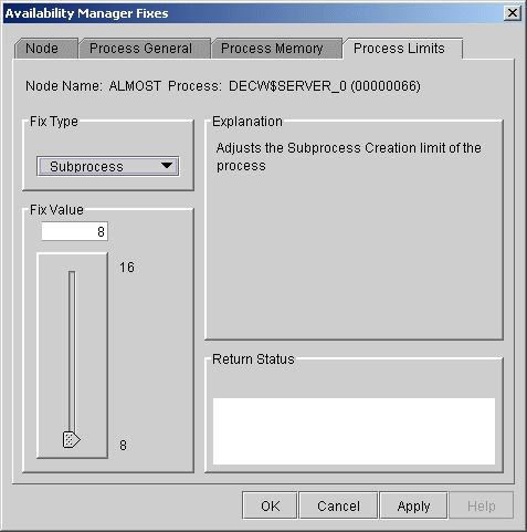 To perform this fix, use the slider to adjust the subprocess creation limit of a process to the number you want. You can also click the line above or below the slider to adjust the number by 1.