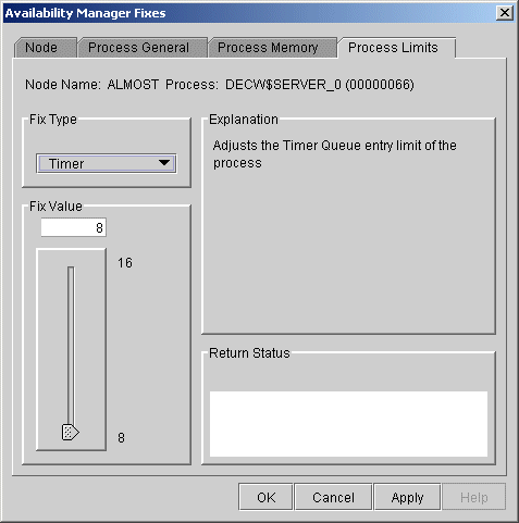 If a process is waiting for a resource, you can use a Process Limits fix to increase the resource limit so that the process can continue. The increased limit is in effect only for the life of the process, however; any new process is assigned the quota that was set in the UAF.