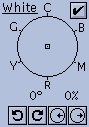 You can control the white remapping control in several ways. You can click on the handle and drag it around with the mouse. There are also four buttons provided under the dial. One pair allows you to rotate the handle clockwise and counter-clockwise without changing its distance from the center. The other pair of buttons lets you change the distance between the handle and the center without changing the angle.