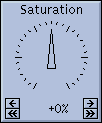 color televisions. The saturation control is a dial that operates exactly like the dials described in "Using the Dial Controls". In short, you can click and hold down any of the four buttons in the bottom of the control to increase or decrease the control's value. You can also click on the dial itself and move the pointer around directly. |
