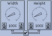 You can change the size of the printed image by adjusting the Width or Height dials. Normally, the dials are locked together, to keep the aspect ratio of the image constant. You can unlock the dials by turning the off the checkbox located below the dials. As you change the dials, the size of the image (when printed) is displayed below, in inches and in millimeters. The current resolution of the image is also displayed below. The "Resolution" numbers tell you how many image pixels will be printed per inch.
