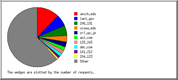 year: #reqs: #pages: ----: -------: ------: 2000: 2078379: 372582:Busiest year: 2000 (372,582 requests for pages).![]()