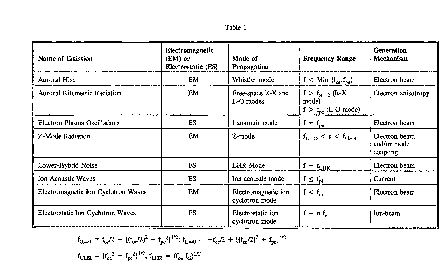 The advanced design of the Polar plasma wave instrument and the other instruments on the Polar spacecraft will allow us to investigate many specific questions that have been left unanswered. For example, to understand the exact mechanisms involved in the generation of auroral kilometric radiation closely coordinated wave and plasma measurements must be made as the spacecraft crosses the auroral field lines. It is not known, for example, whether a loss-cone [Wu and Lee, 1979] or an electrostatically trapped particle distribution [Louarn et al., 1990] is responsible for the growth of the auroral kilometric radiation. The high-resolution plasma measurements on Polar, in conjunction with the very detailed plasma wave measurements, should allow us to answer questions of this type. A list of the investigators and institutions participating in this investigation is given in Table 2.